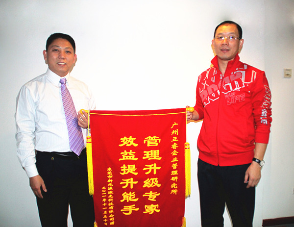 新光源董事長李健宇贈送正睿咨詢“管理升級專家,效益提升能手”錦旗